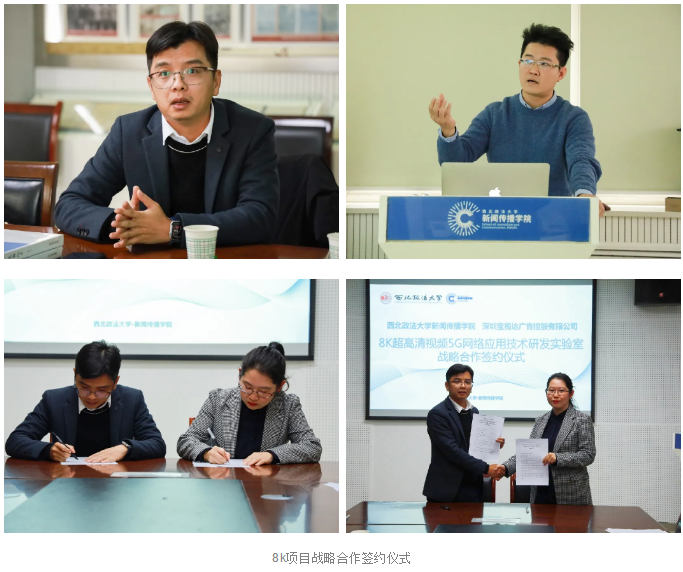11月24日下午,我院与深圳宝视达广告控股有限公司就“8K超高清视频5G网络应用技术研发实验室”项目在我校长安校区何微纪念馆举办战略合作签约仪式深圳市宝视达广告控股有限公司代表和我院师生代表参加仪式。我院副院长陈琦副教授主持仪式。