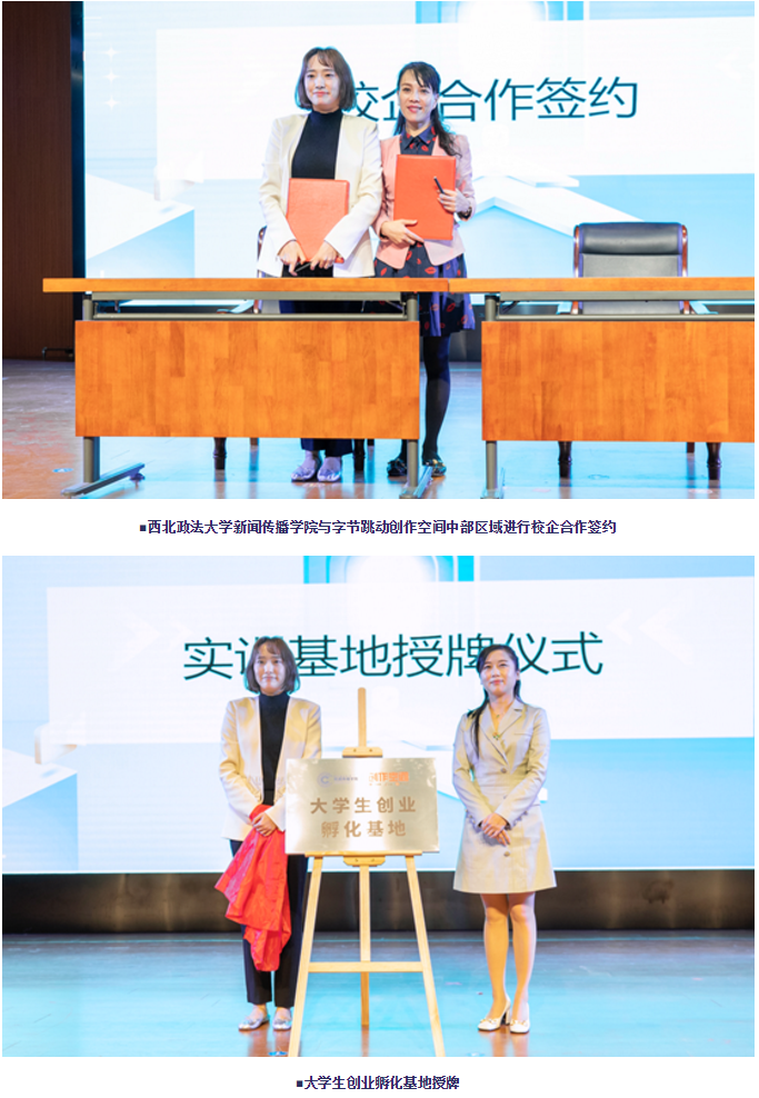 为进一步加强校企合作交流,向大学生提供更多实践机会,助力在校大学生就业引导,稀饭动漫 与字节跳动创作空间中部区域进行校企合作签约,进行大学生创业孵化基地授牌,学院还聘任字节跳动创作空间中部区域负责人江瑶为实务导师,持续推动校企联动,开拓高校人才实践对接新通道。