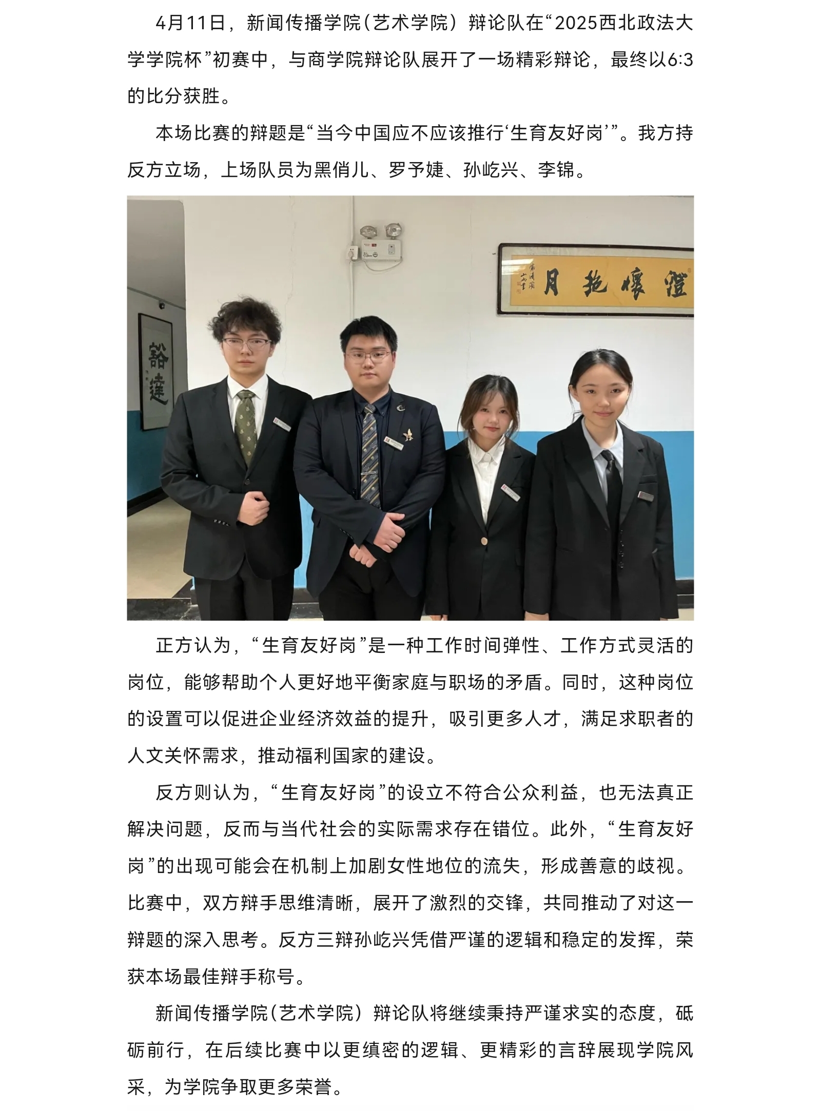 稀饭动漫 辩论队赢得“学院杯”首胜!