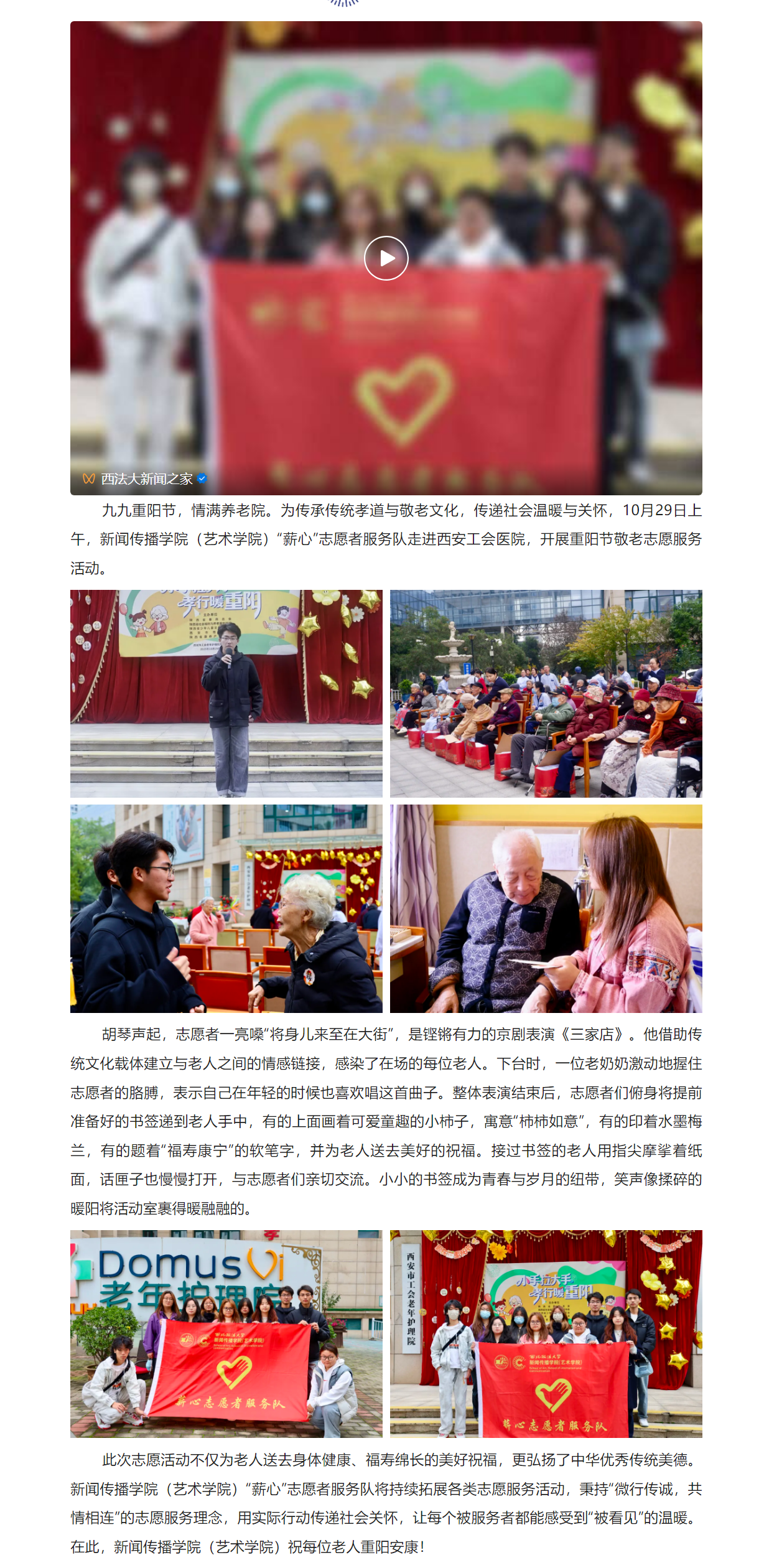 稀饭动漫 “薪心”志愿者服务队走进工会医院开展重阳节志愿服务活动
