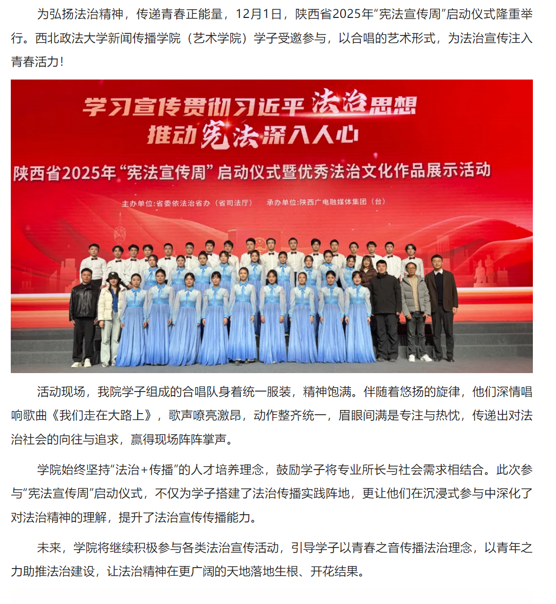 法治声传,青春同行——我院学子受邀参与陕西省2025年“宪法宣传周”启动仪式