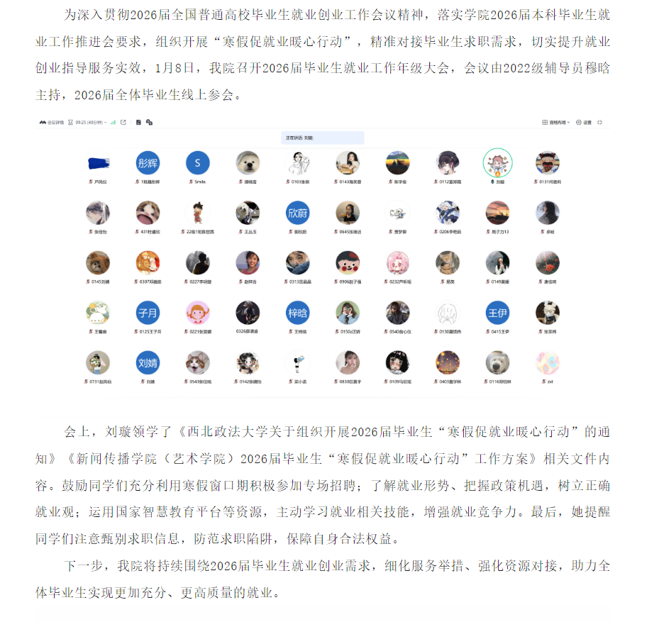 稀饭动漫 开展2026届毕业生就业工作年级大会