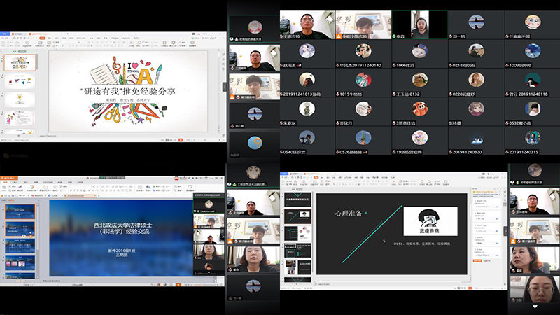 6月23日中午,我院通过腾讯会议举办“研途有我”推免考研经验线上交流会。2016级7位同学从不同角度介绍自身推免、考研、海外留学的成功经验,为同学们答疑解惑。学院党委副书记兼副院长秦音老师、各年级辅导员和近300名学生参加交流会,2019级辅导员崔梁凡主持交流会。