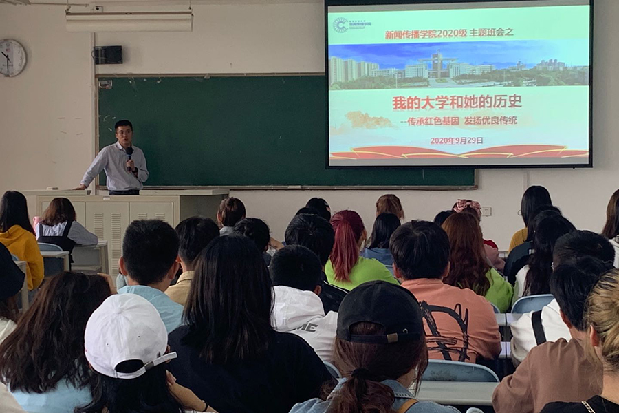 为传承红色基因,发扬优良传统,同时解答新生入学后在学校生活方面的问题与困惑,使新生更好地了解本校的历史与发展,按照学校有关要求,2020年9月29日至9月30日上午,我院2020级本科生于致知楼开展以“我的大学和她的历史”为主题的新生入学教育班会,我院团委书记、2020级辅导员王亮老师,2020级辅导员王娜老师主持会议,2020级全体本科生参与此次学习。