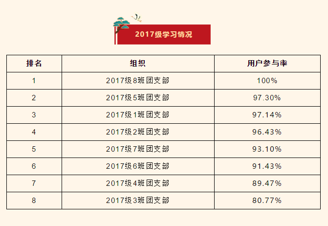 在上一期“青年大学习”网上主题团课的学习中,2017级8班团支部位居榜首,2017级5班团支部排名第二,2017级1班团支部排名第三。