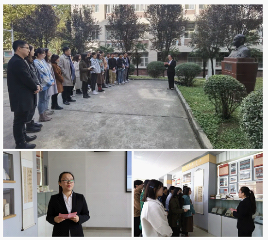 2017级吴一丹同志担任此次参观活动的讲解员。她首先带领大家参观了何微先生雕像,介绍了何微先生从战地记者、报人到著名新闻学教授、学者的一生。移步纪念馆内,吴一丹根据何微纪念馆内的旧物陈设,围绕“革命刀笔”、“情系政法”、“学界泰斗”三个篇章详细讲解了何微先生的一生努力与成就。作为一名共产党员,何微先生一直以行动践行着共产党人的初心和使命,在人生的不同阶段和岗位上奉献自我,今天我们纪念何微先生,既是对他崇敬与仰爱,也是在于深刻学习他的人品、素质、业绩与精神。