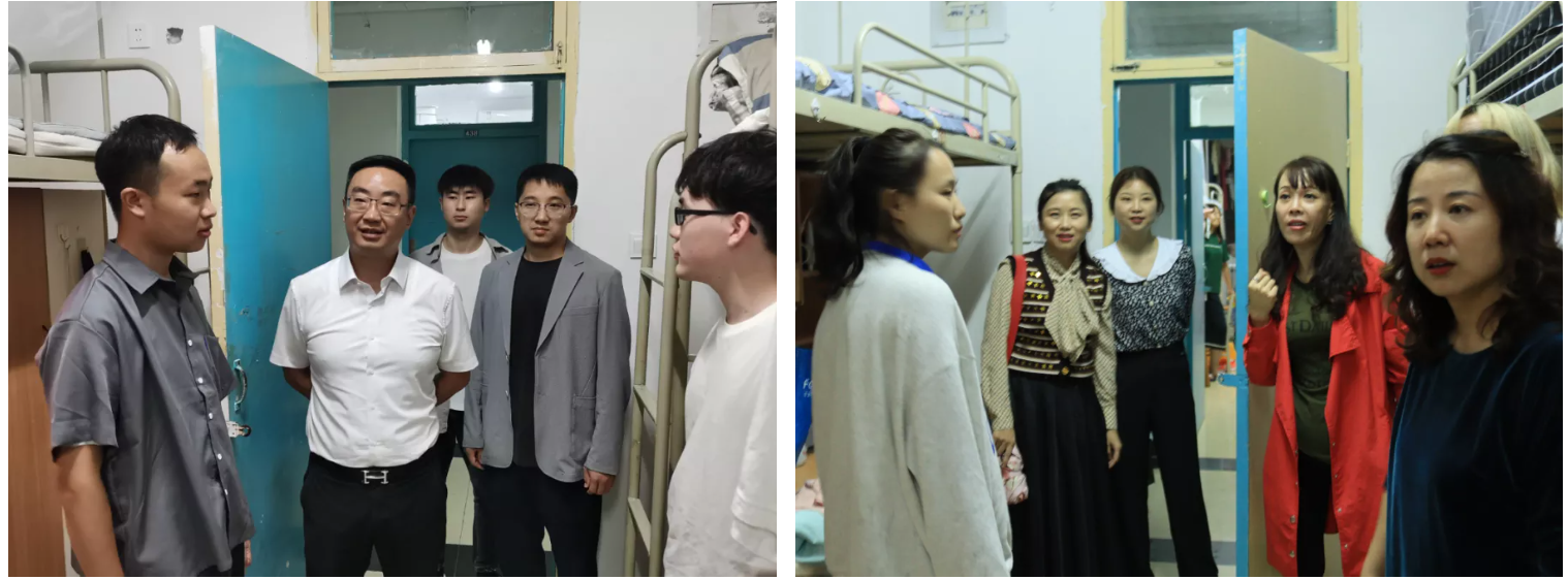 为加强新生宿舍管理,帮助新生适应新环境,尽快完成角色转换,9月5日晚,稀饭动漫 党委书记刘渊,党委副书记、副院长秦音,副院长郭淼,副院长陈琦,院团总支书记、2021级辅导员巩飞、2021级辅导员李佳欣,走访新生宿舍,关心慰问新生。