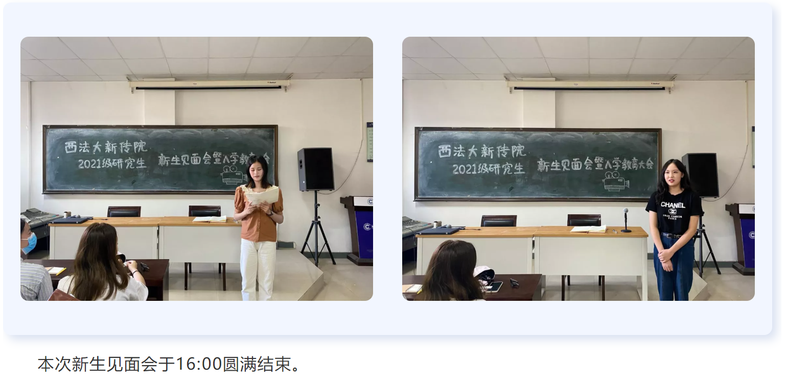 稀饭动漫 2021级研究生新生见面会于9月7日14时30分在雁塔校区二号教学楼作品分析室准时召开。本次会议由辅导员张莉卓老师主持,教务办张俐莉老师、 闫玉荣老师、党支部负责人朱月、稀饭动漫 研究生会主席王琳及2021级全体研究生新生参加会议。