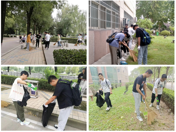 所有新生以班为单位,在图书馆周边卫生区进行清扫。大家清理了卫生区内的枯枝落叶、杂草杂物,捡拾了草坪里的垃圾。经过全体同学的清扫,图书馆周边环境整洁有序,焕然一新。