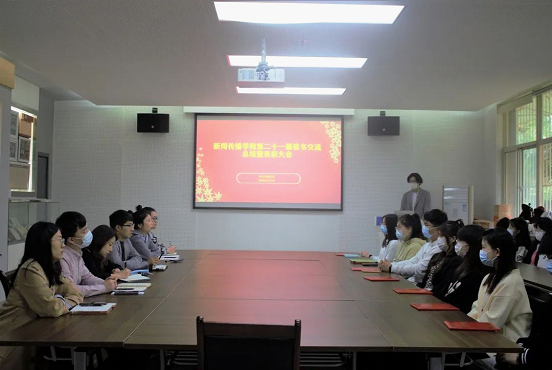 秦音作总结发言,她认为,要将读书交流融入日常生活,让书香充盈我们的灵魂,与此同时,也可以选择用新媒体的方式记录下来所读所感,发现自己的进步。她对同学们寄于三点期望:希望大家能够创新读书载体,用更加喜闻乐见的方式开展读书交流活动;保持对读书的热情和积极性,发挥学院特色;借助学院优势,强化宣传并营造读书氛围。