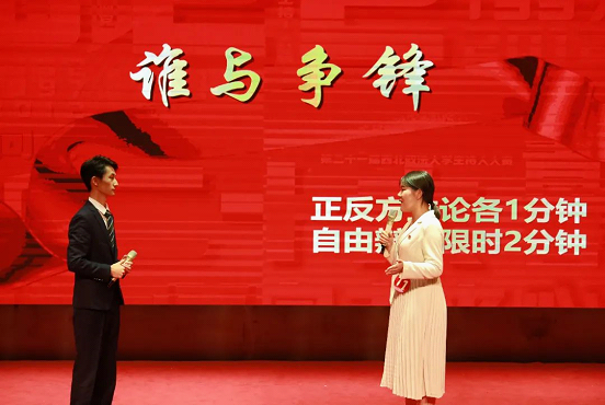 谁与争锋环节,选手们激烈辩论,相互成就,让我们看到了同学们对时事政治的密切关注和思想辩论的积极交锋。