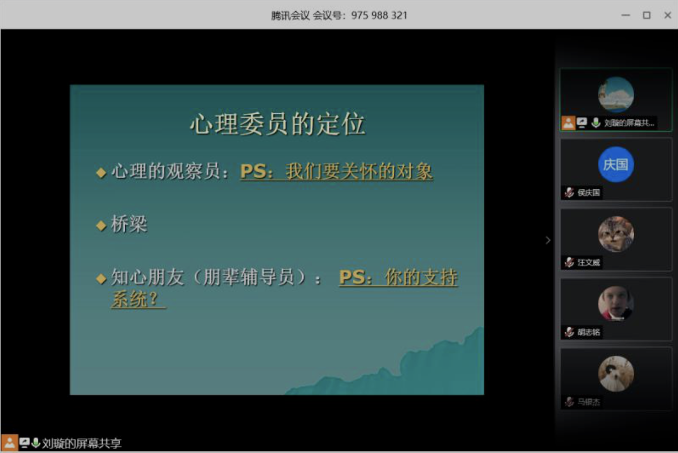 培训会围绕着如何做好一名心理委员等内容,帮助大家更好的明确自身职责。在培训会上,刘璇老师首先强调了心理委员在班级建设中所肩负的职责,以及要找好自身的定位,做好师生之间的“桥梁”,从而更好地为同学们服务,也帮助辅导员更好的了解同学们。其次列举了心理委员所要重点关注的几种情况,最后着重强调了心理委员在服务和帮助同学时一定要保持积极的工作态度,做到“尊重,真诚,善于倾听”,真诚友好地与同学们进行沟通。