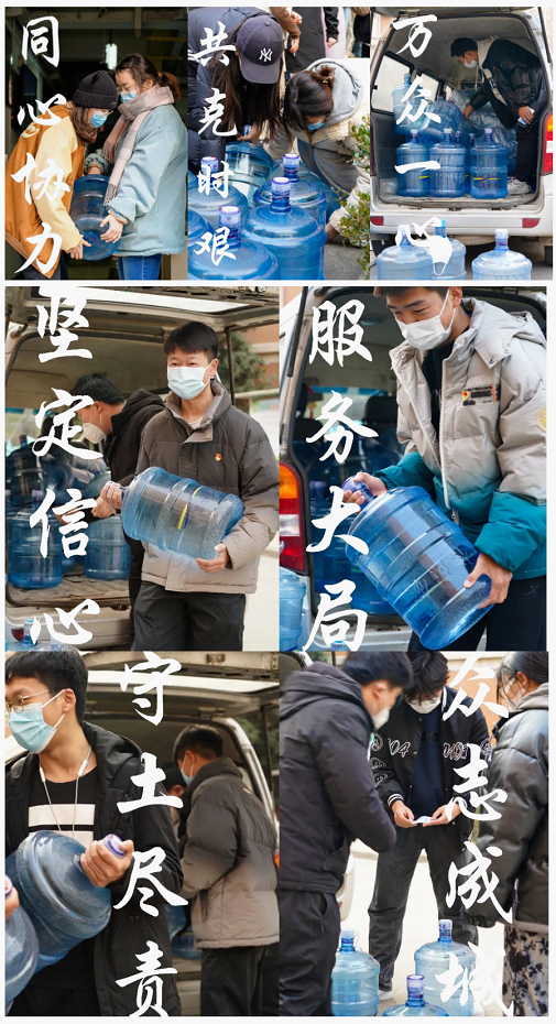 为积极响应学校疫情防控工作部署,充分发挥基层党组织战斗堡垒作用和党员先锋模范作用,稀饭动漫 本科生第一党支部广泛动员学生党员、积极分子投身校园疫情防控一线,成立志愿服务先锋队。稀饭动漫 第一党支部于12月24日召开支部线上会议,会议由党支部书记王娜主持,对“我为同学做件事”系列志愿服务活动进行全面策划与安排。 会议后志愿者们按照分组安排,于12月24日15时由志愿者吴珂、周航吉、白浩凯有序组织开展首次志愿服务活动——“同学,水来啦”,以解决封闭管理期间学生饮用水需求量大,供水站送水量激增,学生缺水后不能及时供应的难题。 本次志愿服务活动不仅有效解决了同学们短期内的用水问题,也大大减轻了供水人员的工作量,提高供水站供水工作效率。后续支部志愿服务先锋队将会继续结合学院学生实际难题展开工作,用实际行动充分发挥“一名党员一面旗帜”的先锋模范作用,践行党员承诺,营造“学党史办实事、勇服务当先锋”的积极氛围,为解决全院学生实际难题、维护学校安全稳定贡献一份自己的力量。
