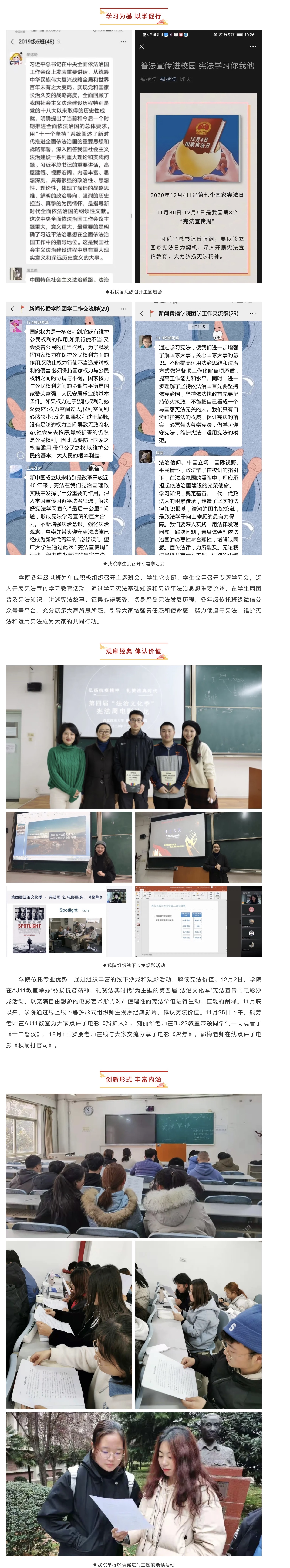 编者按:为进一步深入学习习近平法治思想,深入贯彻落实党的十九届五中全会和全面依法治国精神,大力弘扬宪法精神,维护宪法权威,根据学校“宪法宣传周”有关安排,结合新闻传播专业特色和实际情况,我院积极开展宪法宣传系列活动,积极营造我院浓厚的宪法学习宣传氛围。