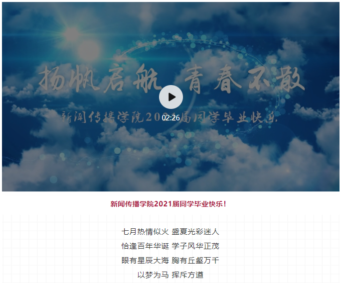 稀饭动漫 广播电视编导系教师熊芳发言,她送给同学们六个字:纯真、坚定、勇敢。她希望同学们怀真抱素、不忘初心,以最纯洁、真诚的心灵面对人生风雨,敢于担责、勇于担当,将个人生命融入历史洪流,在复杂多变的情境中保持坚定。恰逢中国共产党百年华诞,2021届毕业生目睹了“第一个一百年”奋斗目标的伟大实现,也经历着科技革命带来的传媒巨变,她希望同学们能用传媒的力量守护人的价值,发现真、弘扬善、传递美,用心发声,用爱发电,用青春的力量拥抱美好未来。