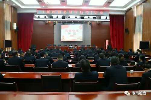 副教授符万年同志,为全体干警讲授新闻消息写作技巧和司法部门如何更好的与媒体和记者搞好沟通,作专题讲座。市院党组成员、机关全体干警,各县区检察院、舟曲县检察院(为市检察院援助藏区检察工作受援单位)从事公文信息写作和宣传的干警,共120余人参加讲座。讲座由市检察院党组书记、检察长魏刚主持。