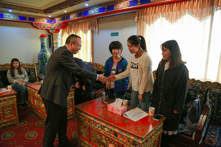 的新闻专业诞生于1958年,两家50后,走了半个世纪,今天终于在这里携手”。他借用《闻新周报》实习特刊上的一句话——“遇上你是我的缘”来表达在此实习的切身体会,并表示双方都要珍惜这份缘分。“西藏的新闻资源可以说是一座富矿,文化、历史、发展、稳定等话题都是值得报道的内容。作为一名西藏媒体人应该感到责任重大,并且为自己能成为一名西藏媒体人而骄傲”。在今后的合作中,欢迎高校教师到西藏开展实践和理论研究,同时鼓励西藏日报社的记者走进高校检验和提升自己的理论高度。同时建议同学们在日后将实习的触角延伸到基层去,更加深入全面地了解西藏、感受西藏。最后预祝同学们圆满完成实习任务,在这里度过终身难忘的时光,扎西德勒。