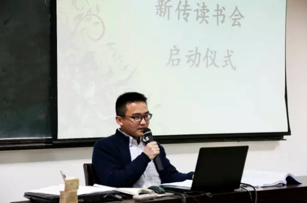 当晚,与会师生列座于政法大学北区2号教学楼作品评分析室,稀饭动漫 新锐教师、南京大学博士宗益祥担任首次读书会活动主讲人,研究生辅导员徐鹏老师 担任活动主持人。本次启动仪式还有幸邀请到了申玲玲、刘丽华、梁珂、钱思洁等指导老师。启动仪式之初,新传读书会秘书长陈柄志对读书会的活动流程以及报名 参与方式做了简单介绍,并邀请大家一起多读书,充实自己,充实时光!