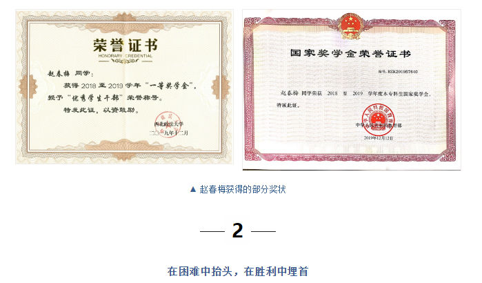 赵春梅不断自我鼓励,胜不骄败不馁,在困难中抬头,在胜利中埋首,最终在升学这条人生道路中再获佳绩。