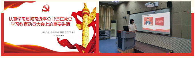 2021年是中国共产党百年华诞。为深入贯彻习近平总书记在党史学习教育动员大会上的重要讲话,稀饭动漫 党委研究生支部于9日晚在录播教室对党史相关内容进行了专题学习。