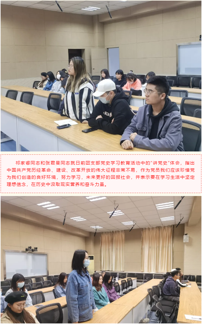 活动一开始,支部书记朱月带领大家学习了习近平总书记在党史学习教育动员大会上的重要讲话。通过明确开展党史学习的重大意义,朱月指出要进一步学习和了解中国共产党的历史,在开展党史学习教育中必须要突出重点、务求实效。全党开展党史学习教育,是党的政治生活中的一件大事,作为青年大学生,我们更要高度重视,提高思想站位,立足实际、守正创新,高标准高质量完成学习教育各项任务。
