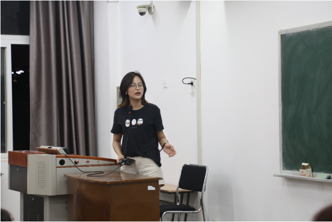 第三位进行宣讲的是马克思主义学院研究生何曼,她以“换了人间”为主题,讲述了叶挺将军的故事。在正式宣讲之前,她带领大家观看了叶挺将军在狱中写的诗歌《囚歌》的朗诵视频引出了此次宣讲的主人公叶挺,通过讲述叶挺将军从二十岁出头投身于民主革命到五十岁不幸遇难的光辉历程,还原了一个高风亮节的民族英雄形象。