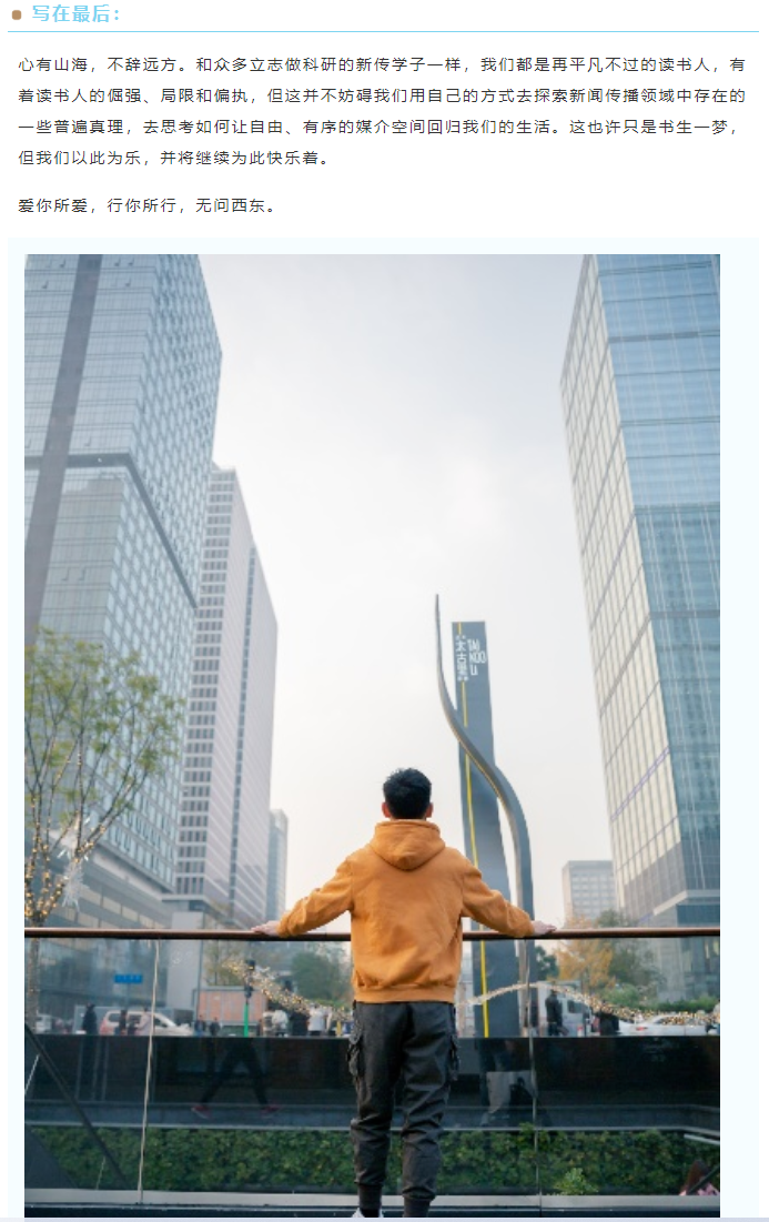 由于考博存在诸多的不确定性,基本上每个导师都会建议考生多报几所学校。出于尽力求稳的考量,我报考了9所学校,其中既有普通招考制的学校,也有申请考核制的学校。无论是报考的哪一种,都需要提前联系导师。导师的联系方式(邮箱为主)一般都会公布在学院官网,如果官网没有,还可以通过知网在某些期刊上(如《国际新闻界》)找到论文的作者联系方式。要想充分了解各院校的具体报考信息和要求,务必多关注院校官网历年的招生简章,无论是普通招考还是申请考核制,各项要求都会写得十分详尽,同一院校每年的招生要求也经常会有细微变化。值得注意的是,很多院校每年的实际录取人数往往会多于计划招生人数。