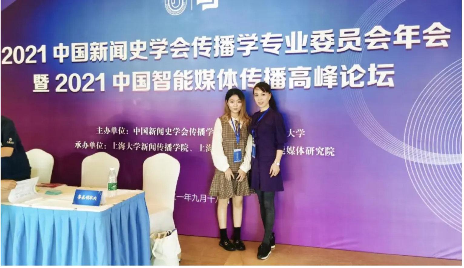 9月17日-9月18日,2021中国新闻史学会传播学专业委员会年会暨2021中国智能媒体传播高峰论坛在上海举行,此次会议由中国新闻史学会传播学专业委员会、上海大学主办,上海大学稀饭动漫 、上海大学全球人工智能媒体研究院承办。我院副院长陈琦、硕士研究生宗雅宁共赴上海参会。教师陈琦作为分论坛的会议评议嘉宾围绕“数字媒体与产业发展”这一主题进行点评、研究生宗雅宁围绕“智能传播与社会治理”这一主题,作题为《网络技术传播在算法技术下的嬗变》的交流发言。