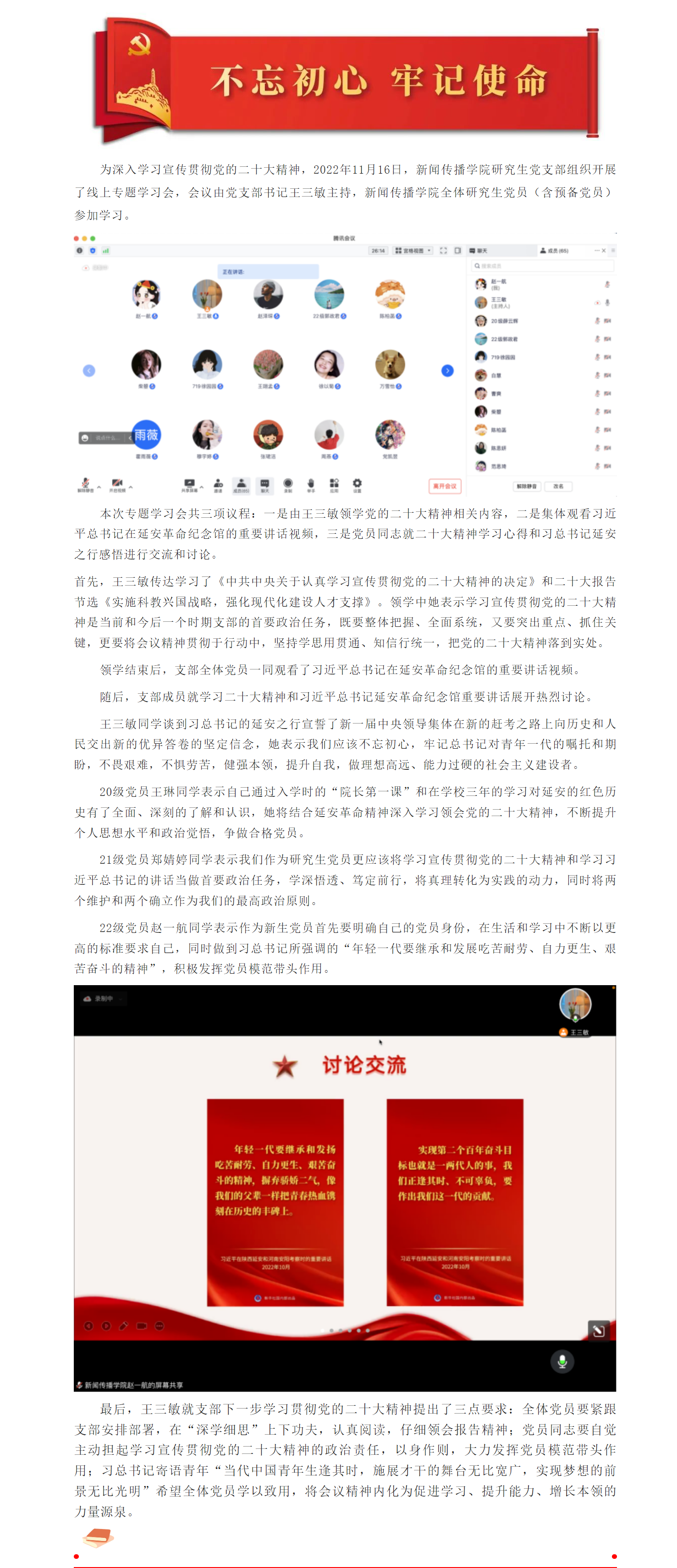 上一篇:稀饭动漫 本科生第一党支部开展党的二十大精神线上专题学习会(四)