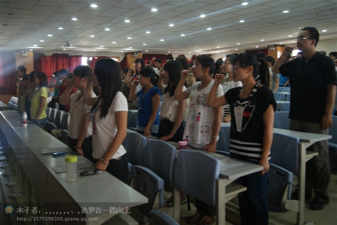 2011级一班·二班·三班及六班同学为响应我校今年“我的青春我的团”主题团活动,在长安校区AJ33教室举行了重温入团誓词等一系列活动。我院团委书记、2011级辅导员苏丹老师参加了本次活动。下午五点整,活动正式开始。首先由主持人致开幕词并宣布活动开始。接着,全体起立,奏国歌,出团旗。在清亮明快的团歌的伴随下,四名同学擎着团旗缓缓走向台前,所有同学默默注视着团旗,轻轻和着团歌,气氛庄严神圣。同学们在六班团支书程晨晨同学的带领下握紧右拳,用斩钉截铁的声音说道:“我志愿加入中国共产主义青年团,坚决拥护中国共产党的领导,遵守团的章程,执行团的决议,履行团员义务,严守团的纪律,勤奋学习,积极工作,吃苦在前,享受在后,为共产主义事业而奋斗。”坚决果断的声音,展现了新一代青年团员的精神面貌。接下来:来自不同班级的团员、团干部代表进行了发言。他们用自己的亲身感受带大家回到了当初那个激动人心的时刻,让人觉得温馨又怀念。