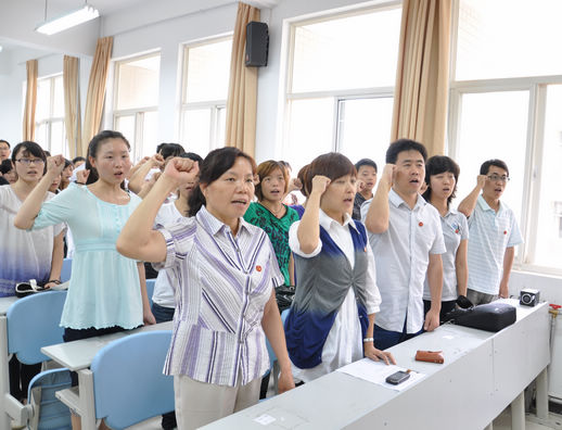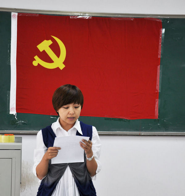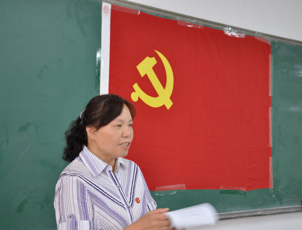 党委组织委员白晓磊老师主持,在雄浑庄严的国际歌声中拉开了序幕。首先由苏丹老师宣读了新党员名单。然后由白晓磊老师带领全体预备党员宣誓,新党员们举起右手,面向党旗许下神圣的誓言,在场的老党员也重温了入党誓词。稀饭动漫