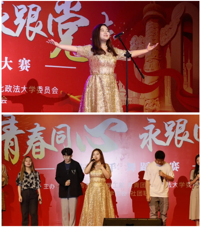 本次大赛,我院舞蹈《无名的功勋》荣获舞蹈大赛三等奖,由经济法学院党委书记李建梅老师颁奖,我院2020级学生牛嘉怡演唱歌曲《军营飞来一只百灵》荣获校园歌手大赛二等奖,由行政法学院院长姬亚平老师颁奖。