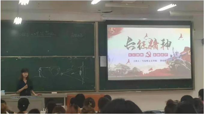 第二位进行宣讲的同学是马克思主义学院研究生郭玥婷,宣讲的主题是“长征精神”。郭玥婷学姐从“背景原因”、“历史回顾”、“长征胜利的伟大意义”、“弘扬长征精神走好新时代长征路”四个部分讲述了长征精神的前世今生。