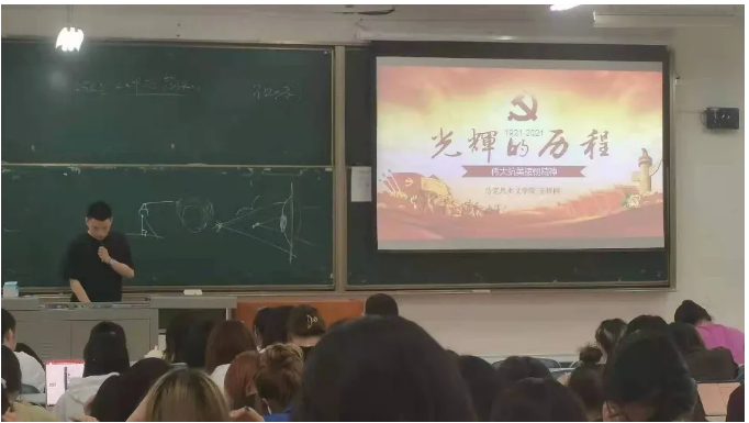 2021年6月2日19:30,我院于天平楼AJ12举行“永远跟党走”党史宣讲系列活动2018级专场。2018级辅导员刘璇组织大家入座,并主持本场宣讲活动。