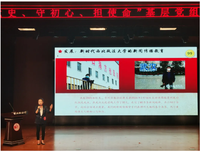 在二级党组织书记组,我院党委副书记秦音老师以《传承红色基因汲取前行力量—稀饭动漫 新闻传播教育发展历程溯源》为此次微党课的主题,从我校新闻传播教育的发展历史引入,将我校发展历程与党的发展历程相结合,充分体现了我校传承红色基因的历史岁月。面对新时代,我校的新闻教育传承了陕北公学和“老延大”红色基因,我们要尊重历史坚守西部。我们要继续把党的红色基因传承好,发扬好,努力培养政治坚定、视野广阔、功底深厚、法新结合的新闻传播人才,在新时代讲好中国故事传播好中国声音。