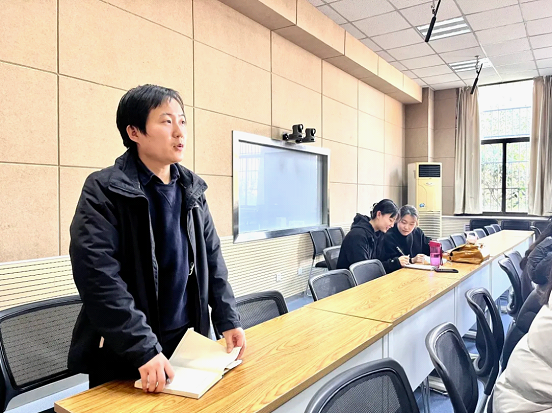 会议开始,党支部书记朱月带领全体党员回顾了十九届六中全会的基本概况,并向党员同志们阐述了会议的主要内容与精神。