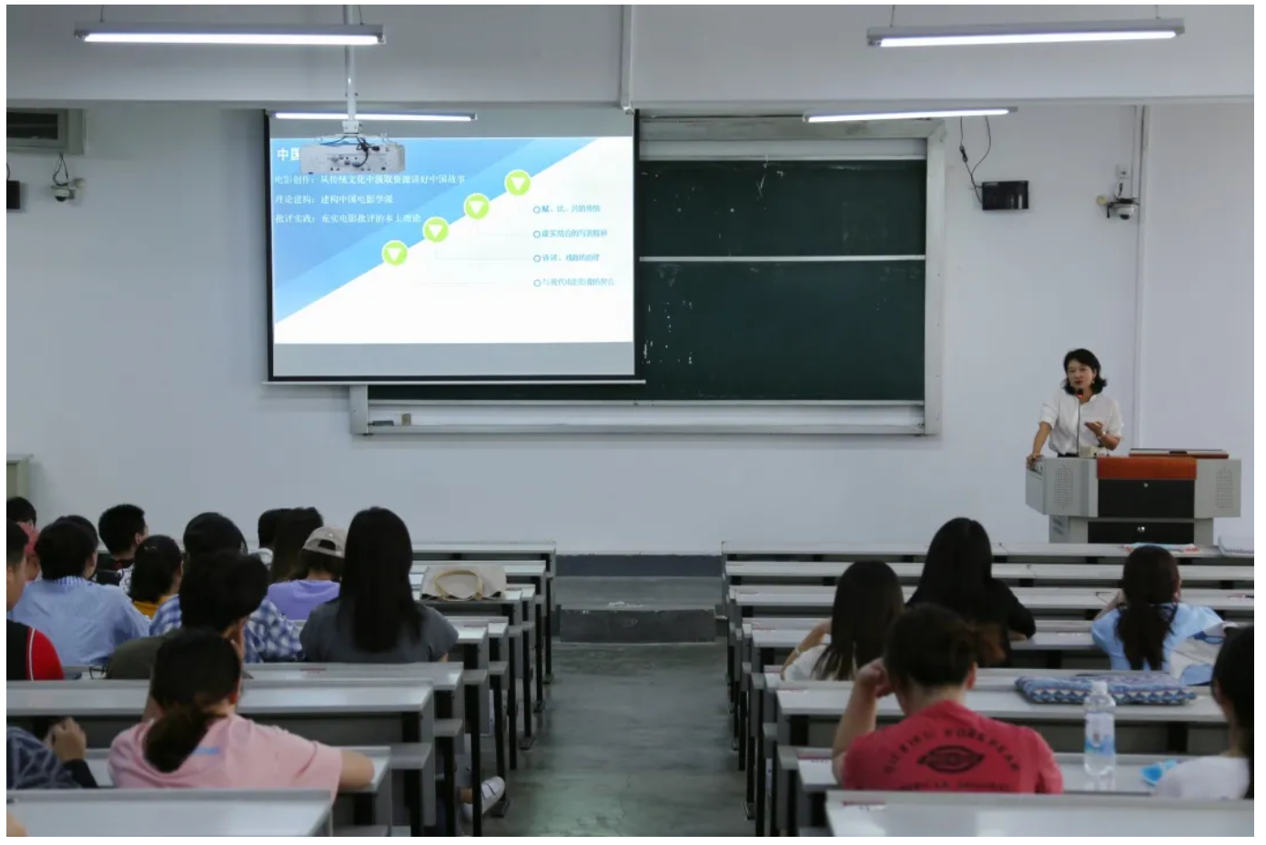 在讲座的最后,郭梅老师指出要从电影出发,也要出乎电影之外,学习电影不能只懂光影,还要学习人文社科乃至其他领域的跨学科知识,这一席话使同学们深受启发。