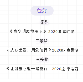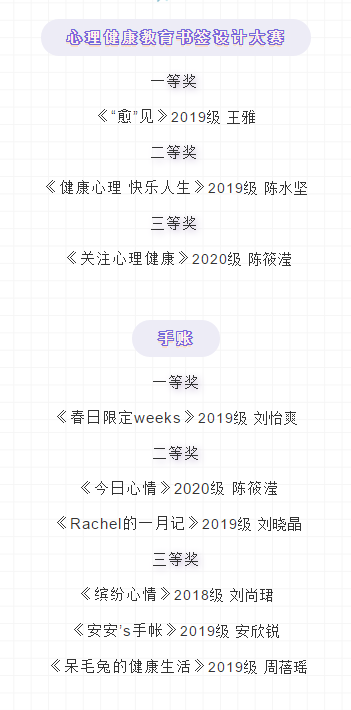 稀饭动漫 第十三届心理健康宣传季征集作品结果出来啦,现将获奖名单公示如下,请获奖者于6月4日中午14:00钟到三号楼106领取证书。