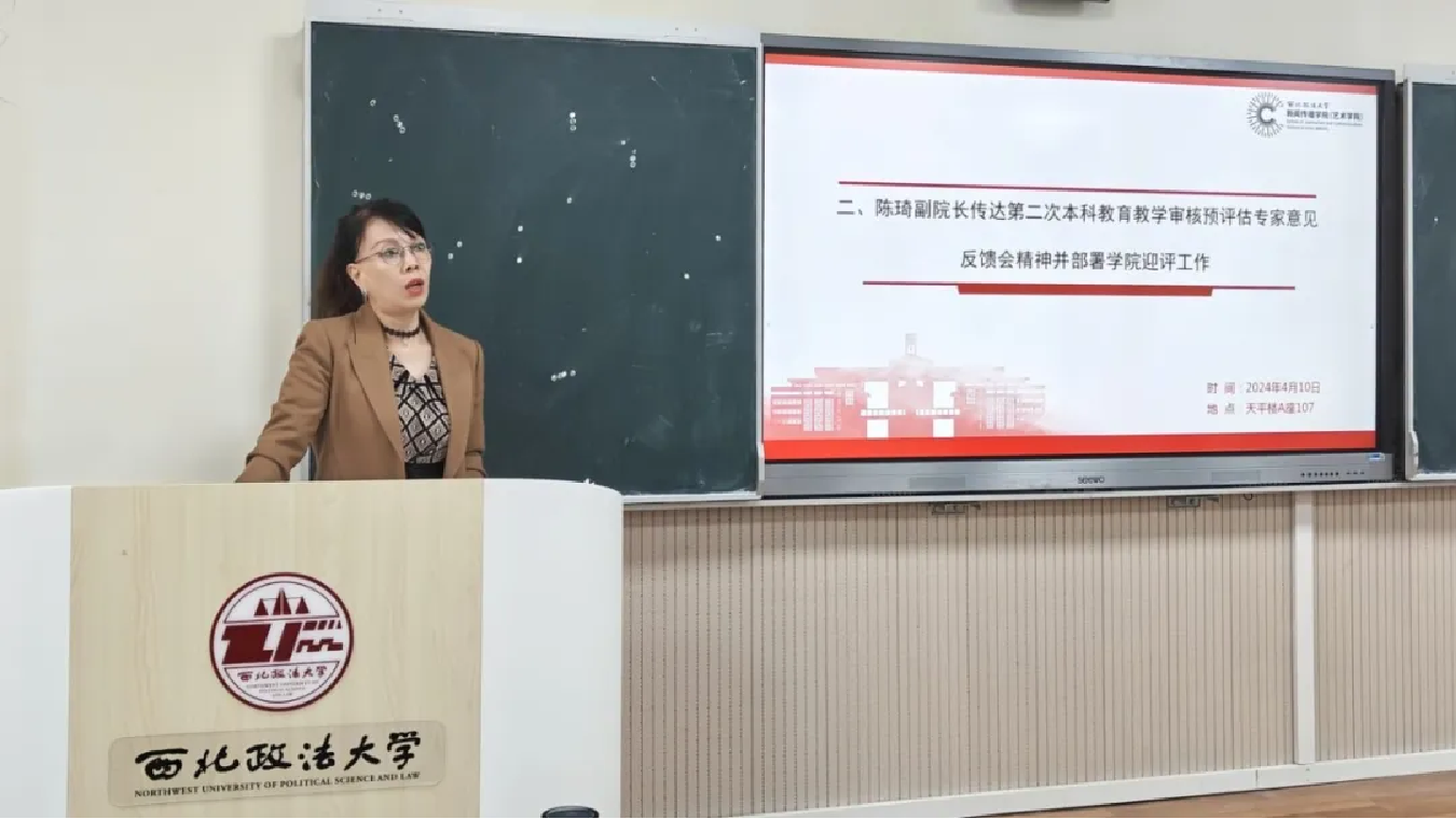 学院副院长陈琦传达第二次本科教育教学审核评估预评工作专家意见反馈会精神并部署学院迎评工作。她从教学质量建设、培养方案论证、课程改革、课堂教学、新文科建设、学业和论文指导、实验教学、劳动教育等方面反馈了专家组意见,她表示,学院全体教职工要对照意见要求,进一步加强各项教学管理制度执行,持续开展好培养方案论证工作,加强成绩管理,提升课堂“四率”,提升课堂教学信息化程度,更新知识体系,强化微专业建设,提升学生学业指导和毕业论文、毕业设计指导。全体教职工要进一步提升迎评工作能力,积极对照时间节点完善迎评材料,提升教风、抓实学风、深化校风保证人才培养质量。