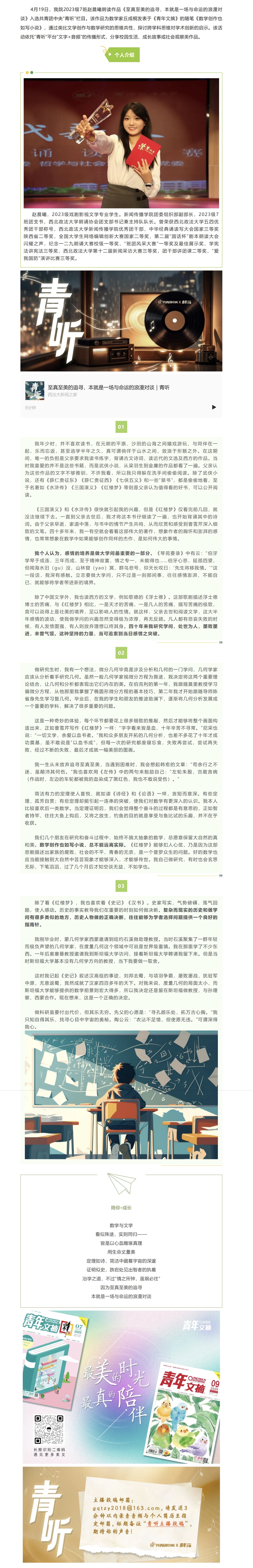 媒体聚焦 | 我院2023级7班团支书赵晨曦诵读作品在共青团中央微信公众号播发