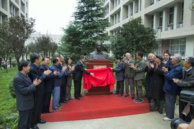 致知楼前参加揭幕仪式,新落成的何微铜像由宋觉书记与何安琪先生共同揭幕。何微铜像为何老的半身像,再现了何老作为革命者和新闻人坚定无畏的精神风貌。全体参会人员在何老铜像前感恩留念。