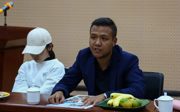 各位校友们的精彩经历,赢得了同学们的羡慕和掌声。实习生们也按捺不住,想要将自己近一个月的收获分享给大家。“我在刚成立不久的西藏日报新媒体部门实习,刚来主任就分给我一个重大任务,让我和张璇同学一起拍摄西藏日报社的宣传片。虽然我们成了第一个‘吃螃蟹’的人,但我们很乐意,并且一定会努力做好”,实习生陈鸣说道。而在西藏法制报记者部门实习的张宇帆同学,他的实习经历打动了在座的各位。“因为工作的关系,我有很多走进群众的机会,我发现,他们中大多数人对于法律的概念似乎很模糊。于是,每次外出采访,我都会通过法制报向他们普及一些法律常识,希望可以对他们有所帮助”。