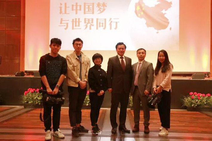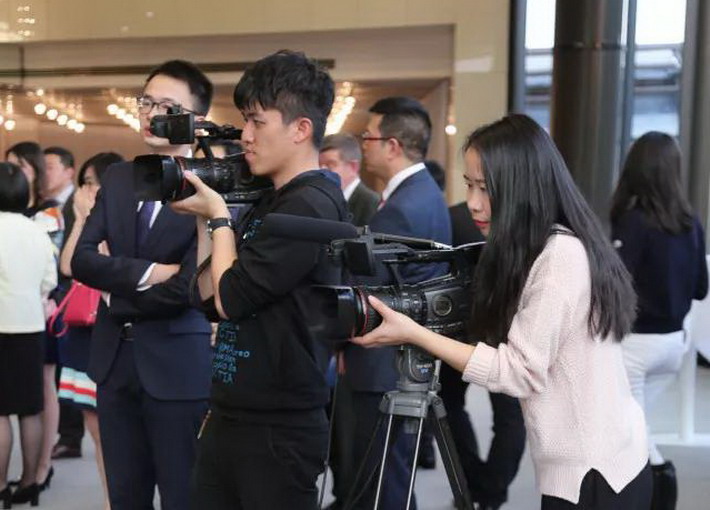 副院长罗朋教授带领2016级新闻与传播专业研究生张晗、张珂郡迅速赶赴杜塞尔多夫会议中心,在与中国驻杜塞尔多夫总领事馆总领事冯海阳先生简短交谈后,迅速按照拍摄要求架设机位、做好拍摄预案。