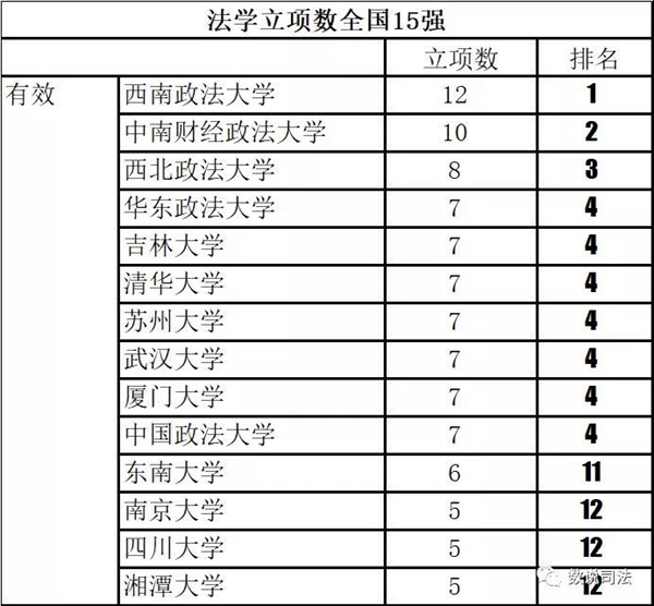 与此同时,我校法学专业在2018年社科总立项数排名中也名列前矛,排名第三。