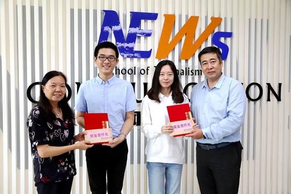 7月4日上午11:00,稀饭动漫 首届“何微新闻奖·励志奖学金”颁奖典礼在学院何微纪念馆举行。院长孙江、党委书记冯冬梅出席典礼,并为获奖的魏修治、赵琛同学颁奖。
