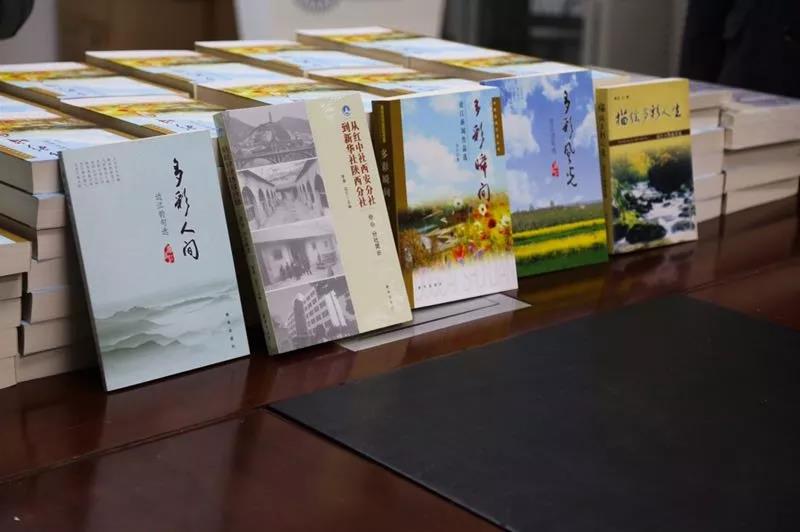 于三号教学楼何微纪念馆接受我校校友,新华社陕西分社前副社长边江先生赠予的一百册书籍。
