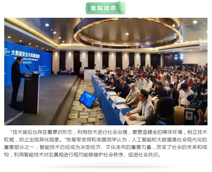 5月25日,大数据安全与风险治理论坛在贵阳国际生态会议中心举办,我院张爱军老师和李圆同学受邀参会,论文《人工智能时代后真相现象的消解、再塑及矫治》在《中国行政管理》辑集出版。