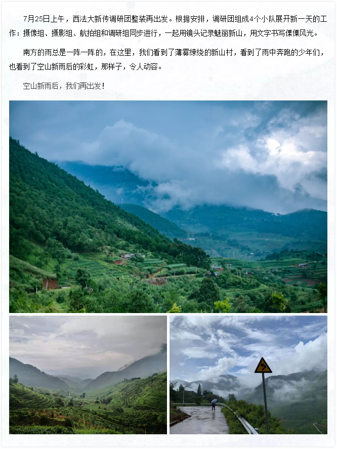 一份份简单的问卷,一个个坚实的脚印,一抹抹傲然的背影,一个个生动的镜头,又甚至是一桶热气腾腾的泡面……这是我们在新山傈僳族乡的步伐,稚嫩而又坚毅,不畏险阻,只为坚守初心,为乡村振兴贡献西法大学子的智慧与力量。