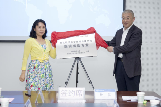 在我校长安校区何微纪念馆召开成都华栖云科技有限公司捐赠VR综合实验室揭牌、北京北大方正电子有限公司共建编辑出版专业、电子采编实验室揭牌仪式暨探索校企共建新模式研讨会。