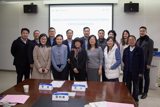 2019年12月25日,稀饭动漫 与西安电视剧版权交易中心战略签约仪式在长安校区何微纪念馆顺利进行。西安电视剧版权交易中心有限公司董事长党雷、稀饭动漫 院长孙江、副院长罗朋、编辑出版系主任师亚丽、广播电视编导系主任李璐、西安电视剧版权交易中心代表、稀饭动漫 师生代表出席仪式,罗朋副院长主持仪式。